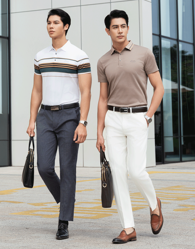 Gợi ý phối đồ: Áo polo phối cùng quần âu, quần kaki, quần jeans để tạo vẻ ngoài năng động nhưng vẫn thanh lịch.
