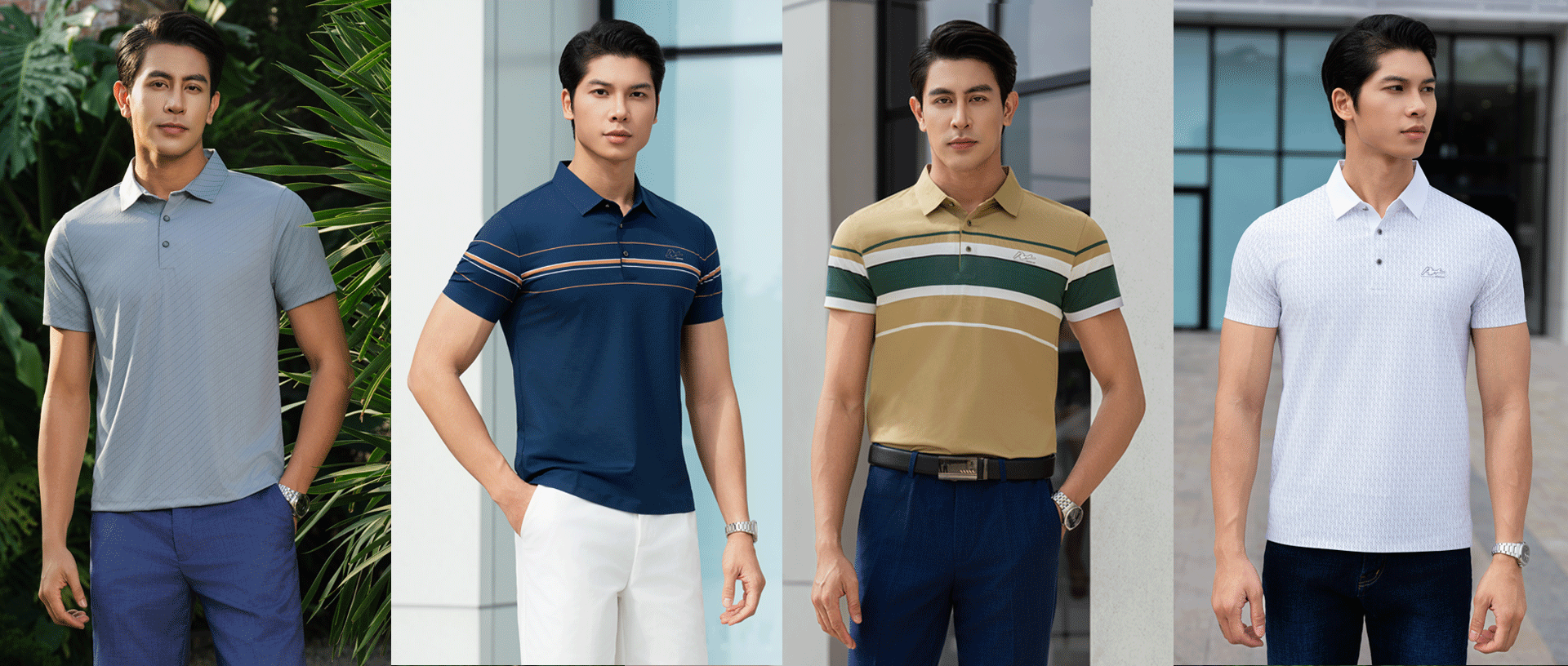 Áo polo năm nay nổi bật với các gam màu sống động như xanh ngọc, vàng nhạt, và cam san hô. Các gam màu trung tính như trắng, xám, và navy cũng được làm mới với các chi tiết nhỏ tạo điểm nhấn.