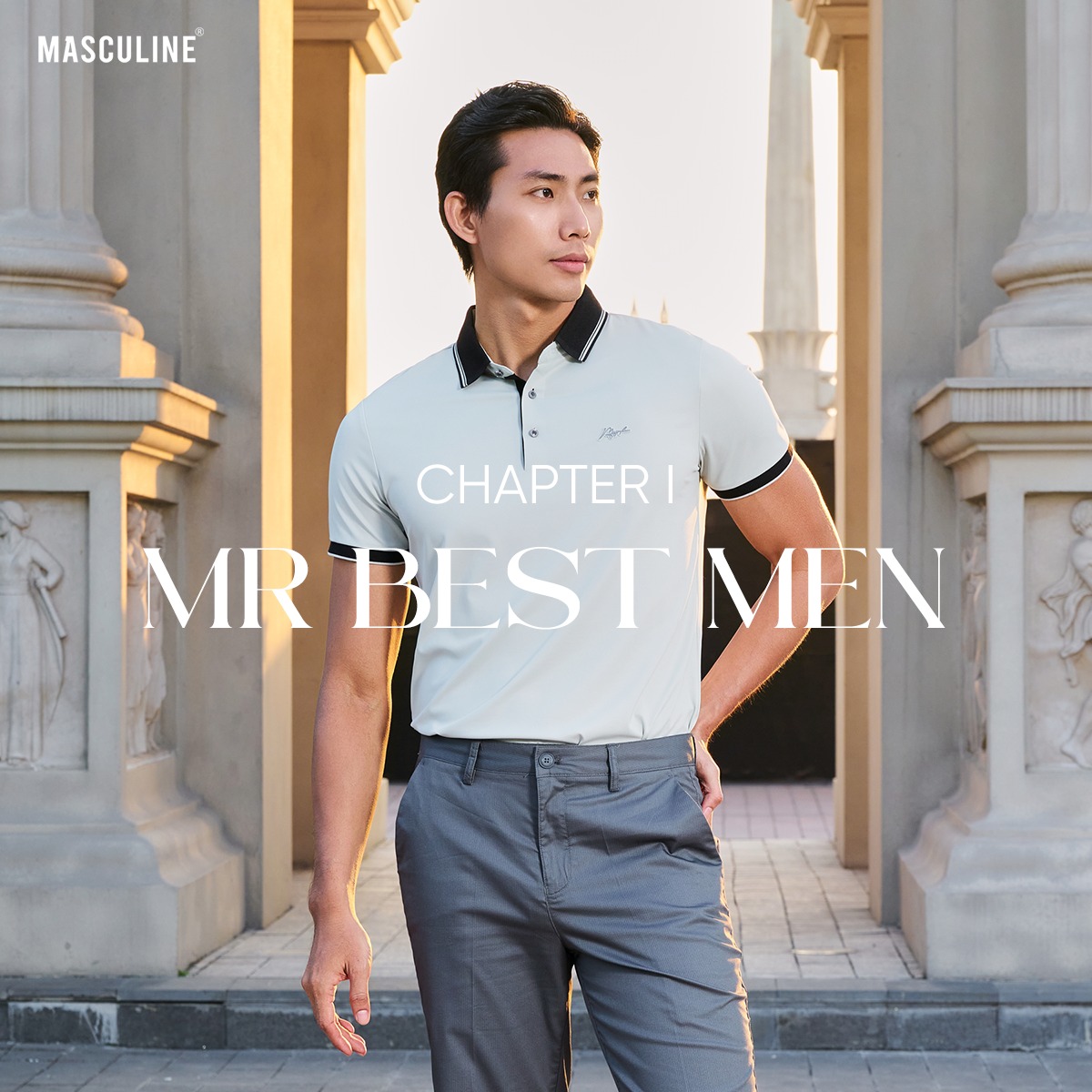 Mở đầu hành trình là hình ảnh người đàn ông trẻ trung, năng động và đáng tin cậy trong mọi tình huống giao tiếp xã hội. Chapter này được thể hiện qua những mẫu polo có phom dáng gọn gàng, kết hợp cùng quần short hoặc quần dài, với tông màu sáng tạo cảm giác tươi mới, lịch thiệp.