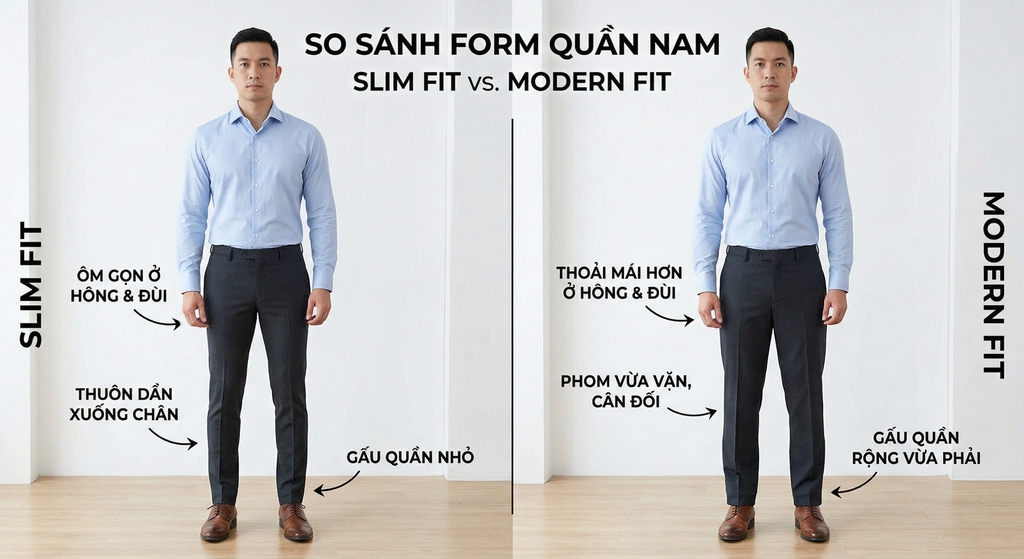 Modern Fit là form quần được thiết kế theo hướng: